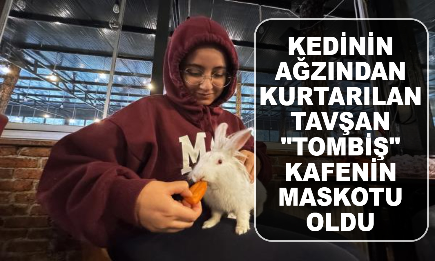 KEDİNİN AĞZINDAN KURTARILAN TAVŞAN "TOMBİŞ" KAFENİN MASKOTU OLDU